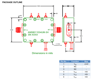 FEATURES . Wide bandwidth from 8 to 11GHz . 34dBm of saturated output pulsed power . High gain, 25dB . Input /Output matched to 50 Ohms APPLICATIONS .Commercial telecom transmission equipment . Fixed microwave backhaul . Commercial 2-way radio