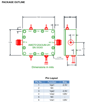 FEATURES .Wide bandwidth from 7.5 to 12.0GHz .42dBm of saturated output power . High gain, 24dB . Input /Output matched to 50 Ohms APPLICATIONS . Commercial telecom transmission equipment . Fixed microwave backhaul . Commercial 2-way radio