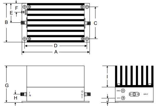 FEATURES • Frequency Range: 4.8 - 6.0GHz • Gain: 30dB • P1dB: +30dBm • IP3: +39dBm • Noise Figure: 6dB • DC Power: 12V • SMA Connector APPLICATIONS . Wireless Infrastructure . Military & Aerospace . Test and Measurement